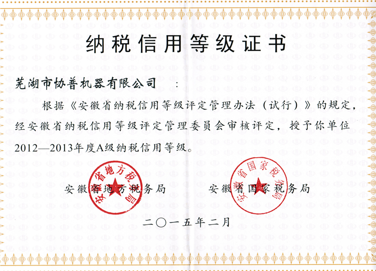 納稅等級證書