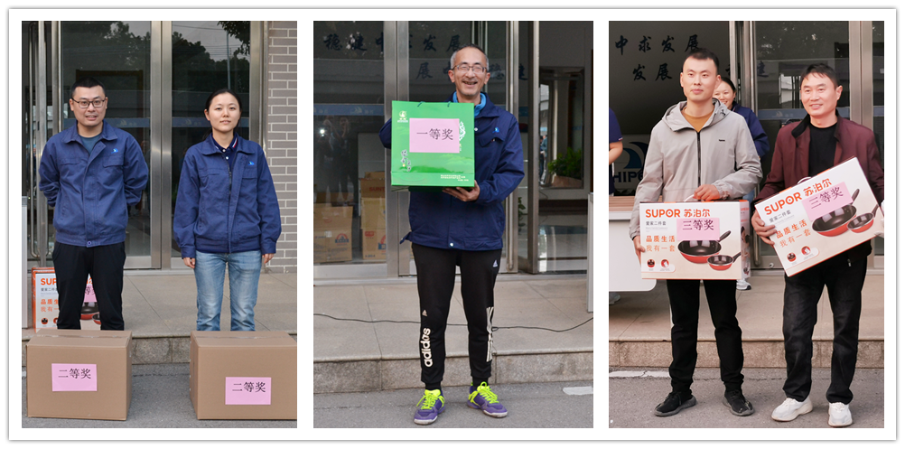 跟隨《團結(jié)友誼進行曲》的節(jié)拍,主持人宣布本屆運動會頒獎儀式正式開始,首先公布各單項一、二、三名名單并頒發(fā)獎品,緊接著公布團體賽的優(yōu)勝方-管理團隊代表隊上臺領(lǐng)獎,于此同時,給予車間代表隊頒發(fā)優(yōu)秀參賽獎;其次根據(jù)全員參賽的積極情況對沒有得到名次的隊員給予參賽安慰獎;最終結(jié)合個人單項參賽總積分(名次和參賽項目累積)公布個人項目一、二、三等獎的得主并頒發(fā)獎品。