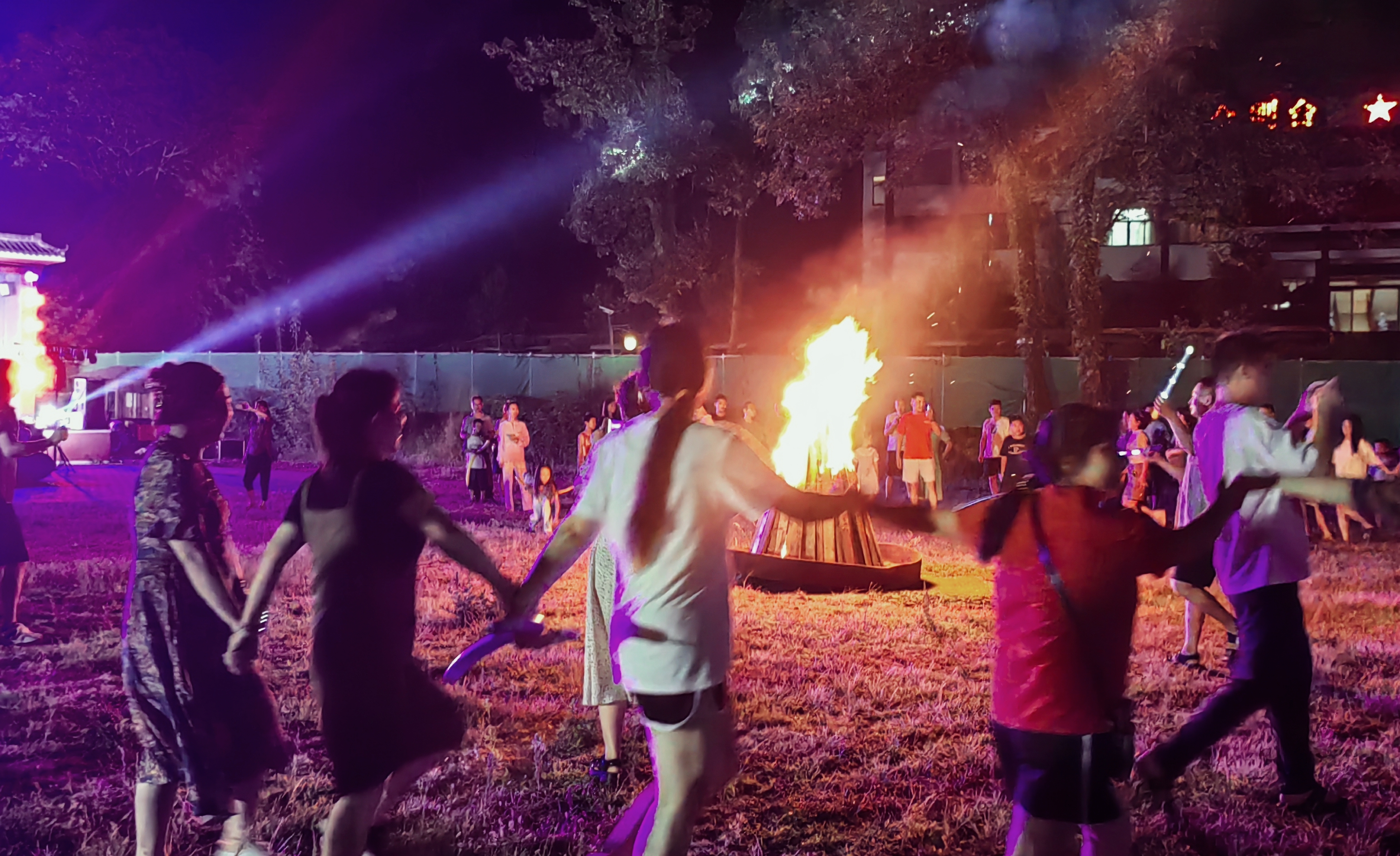傍晚,一群人手拉著手圍著篝火轉(zhuǎn),大家跟著音樂跳舞,旋轉(zhuǎn)起來(lái)仿佛能把生活的煩惱憂愁通通甩開,篝火晚會(huì),是一場(chǎng)能讓人激情澎湃的活動(dòng)!